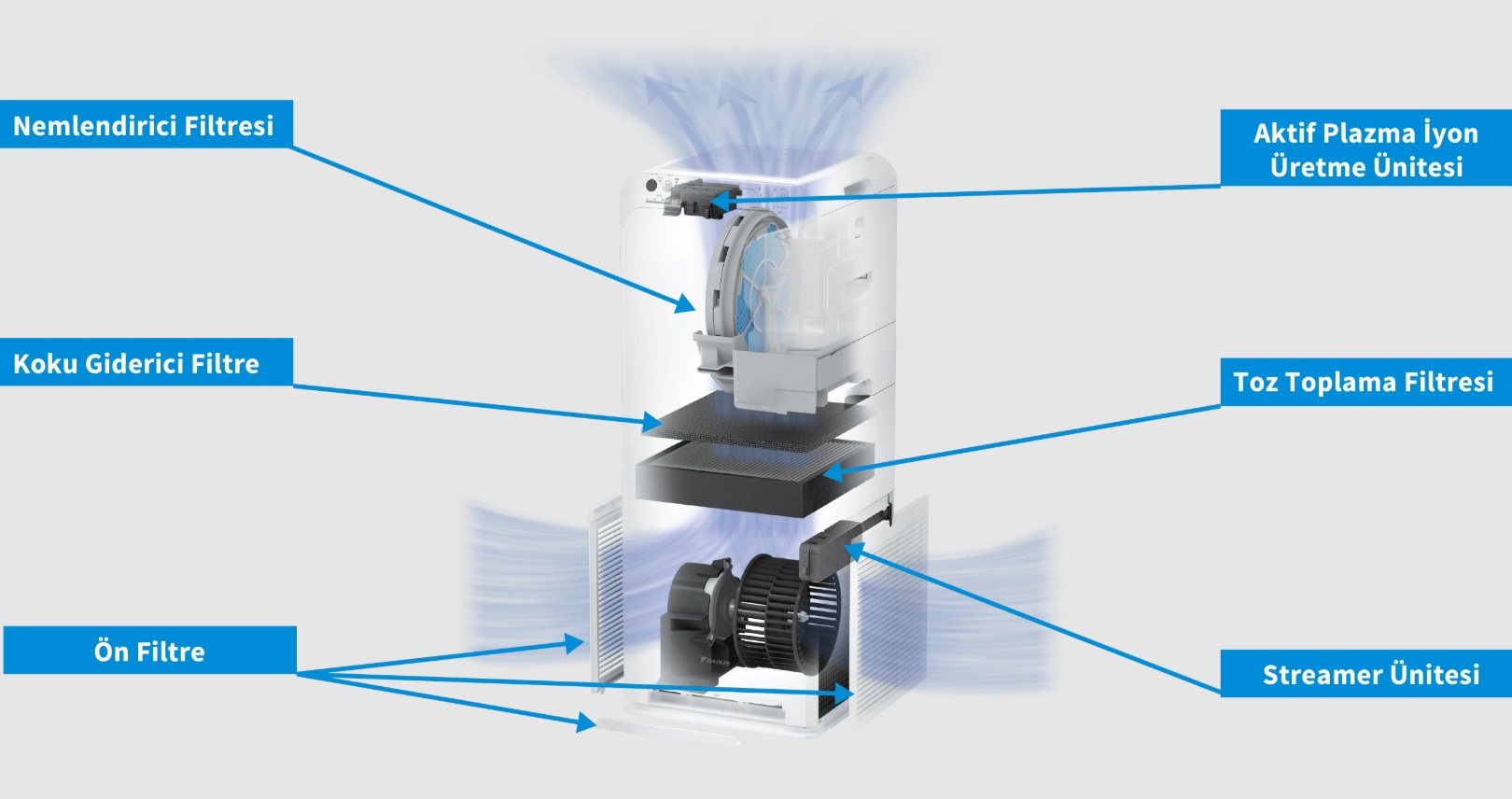 Daikin HEPA Filtre ve Streamer Teknolojisiyle üretilmiş hava temizleyicilerle kirli koku ve partiküllerden arınmış bir ev ve ofis bırakır.
