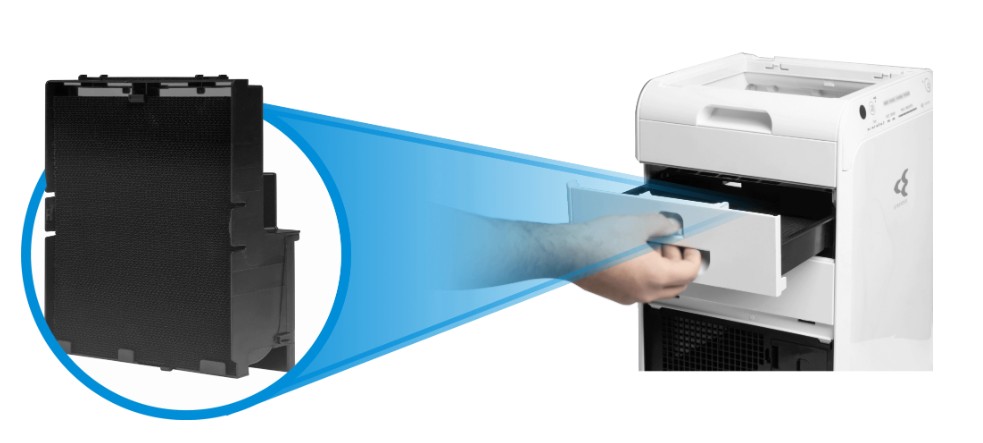2. CYCLE (Döngü): Koku giderici filtre, sigara ve yemek vb. kötü kokuları çeker ve bozunmasını sağlayarak ortadan kaldırır. Emme kapasitesinin rejenerasyonu sayesinde koku giderme kapasitesi korunur. Aktif karbon filtre takılı olan hava temizleyicilerinin aksine, koku giderici filtrenin değiştirilmesine gerek yoktur.