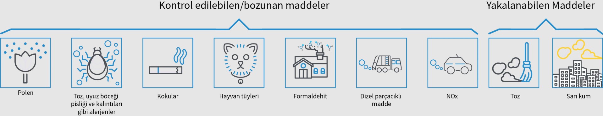 Kapalı ortamlardaki hava kirliliği derecesini, ortamda bulunan toz hacmine, zararlı partiküllerin ve kokuların yoğunluğuna göre algılayarak, evinizin veya iş yerinizin ihtiyacına göre hızlıca temizleme sağlar.