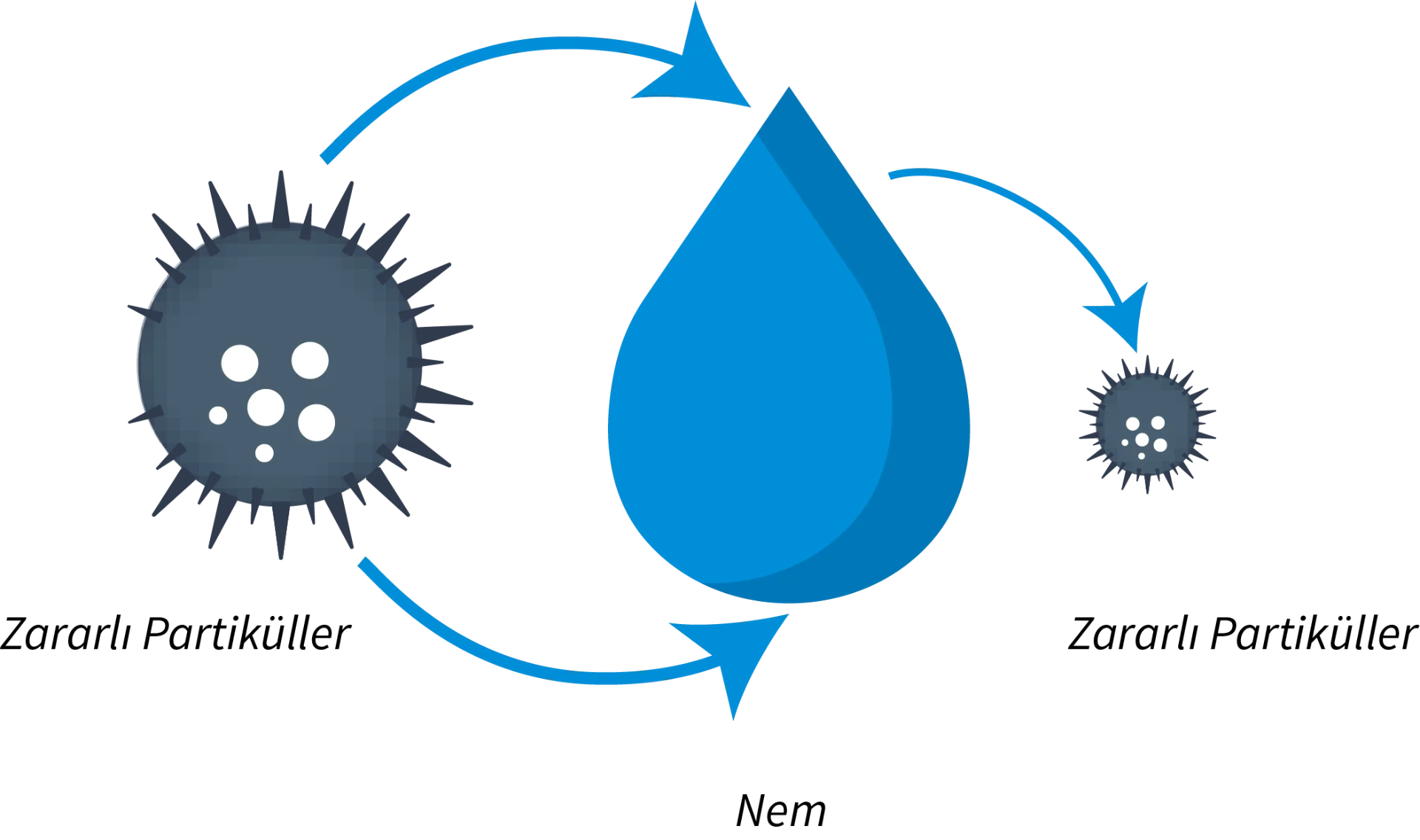 - Nemlendirme özelliği ile zararlı partiküllerin çoğalmasını ve yayılmasını engellemeye yardımcı olur